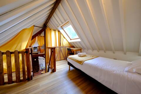 Vous souhaitez passer une nuit (ou plus) avec un petit-déjeuner servi avec accès au Sauna et à la rivière: notre chambre d’hôtes sera adéquate.